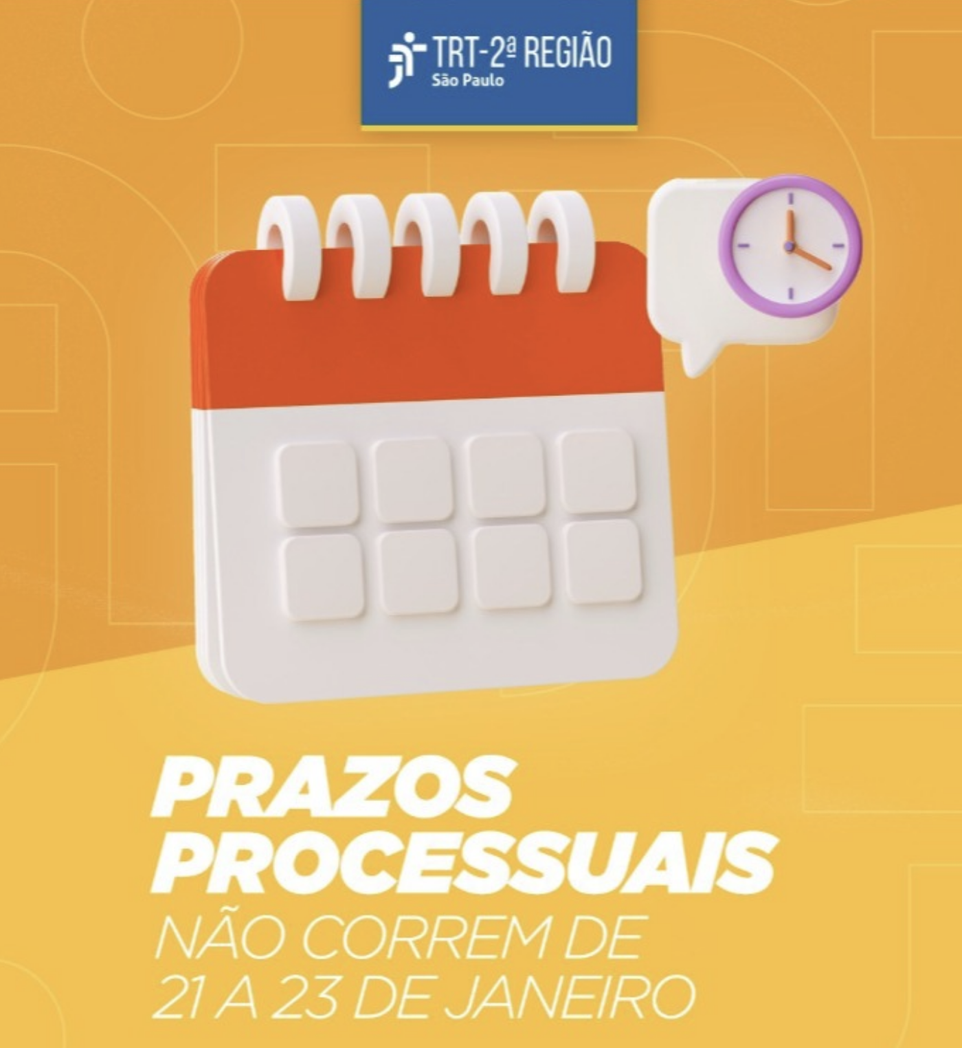 ⚖️ A Justiça do Trabalho da 2ª Região prorrogou a suspensão dos prazos processuais até 23 de janeiro de 2026.